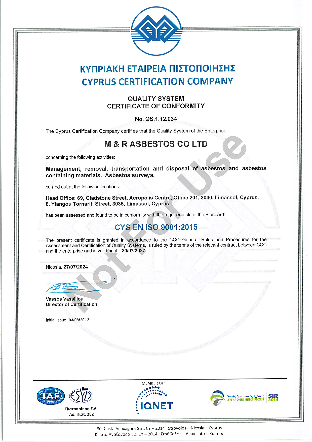 Certificates
